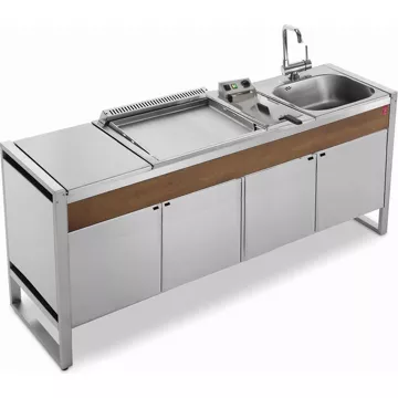 Plancha Inox304 Qualité Alimentaire Plaque 80 : 2/3 Lisse 1/3 Rainurée – Plaque de cuisson 79x40cm, épaisseur 5mm, Renforts anti-torsion, Découpe possible sur la plaque, Pas de migration entre la plaque et les aliments, pas de modification du goût des aliments 3 Brûleurs à bande large – Allumage Piezzo électronique – Bac à graisse incliné intégré sur façade – Pieds réglables en hauteur – Caisson de combustion isolé de la structure pour la sécurité et la performance thermique – Housse de protection PlaNet, Garantie : Composants = 3 ans, Plaque 10 ans