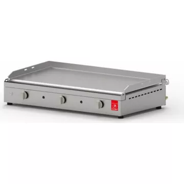 Plancha Inox304 Qualité Alimentaire Lisse Plaque Lisse 80 + Housse protection PLANET + Chariot ouvert – Plaque de cuisson 79x40cm, épaisseur 5mm, Renforts anti-torsion, Découpe possible sur la plaque, Pas de migration entre la plaque et les aliments, pas de modification du goût des aliments 3 Brûleurs à bande large – Allumage Piezzo électronique – Bac à graisse incliné intégré sur façade – Pieds réglables en hauteur – Caisson de combustion isolé de la structure pour la sécurité et la performance thermique – Housse de protection PLANET – Chariot ouvert en Inox avec porte bouteille 1400x500x770mm, Garantie : Composants = 3 ans, Plaque 10 ans