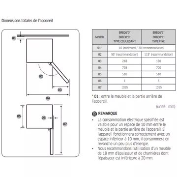 - Pose de l’appareil : intégrable, pour l’encastrer dans une niche et l’habiller d’une porte assortie aux meubles de cuisine