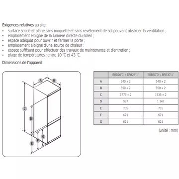 - Installation : porte sans débord, le réfrigérateur peut être installé contre le mur