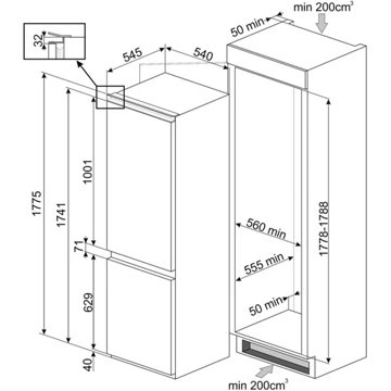 - Dimensions d’encastrement l x h x p : 56 x 178 x 55.5 cm
