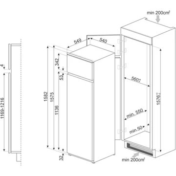 - Dimensions d’encastrement l x h x p : 56 x 158 x 55 cm