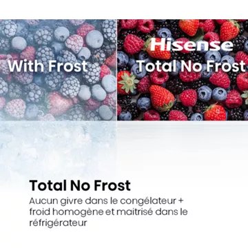 - Froid du réfrigérateur : le froid ventilé permet une répartition du froid de manière homogène et un rangement libre, sans contrainte, des aliments dans le réfrigérateur