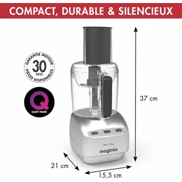 Mais Magimix, c’est aussi l’efficacité d’un produit fabriqué en France et garanti pendant 30 ans. Son moteur professionnel et puissant est aussi peu gourmand en énergie et vraiment silencieux. Avec votre robot Magimix 18260F MINI PLUS CHROME MAT, vous êtes certain de cuisiner comme un chef au quotidien.
