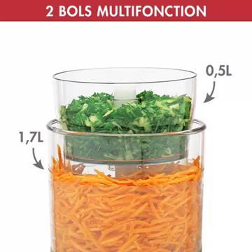Pour cuisiner au quotidien, vous pouvez utiliser 2 cuves sur un seul socle. Il possède, en effet, une grande cuve de 1,7 litre et une petite cuve de 0,5 litre. Chacune d’entre elles est indépendante. Elles peuvent donc être utilisées l’une après l’autre pour cuisiner plus rapidement.