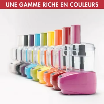 • Accessoires : boîte de rangement des accessoires, couteau hachoir, disque(s) râpeur, presse-agrumes, rapeur/Trancheur, spatule