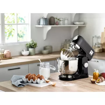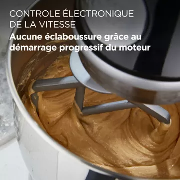 Le robot KENWOOD KMX750AB All Black propose pas moins de 6 vitesses différentes, qu’il est possible de moduler grâce à un variateur. Avec lui, vous profitez d’un kit de pâtisserie en métal qui sera parfait pour réaliser toutes vos recettes. Pétrin, fouet et batteur s’associent à un mouvement planétaire pour préparer des pâtes à la texture idéale.
