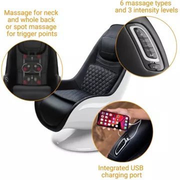 Le Siège Massant MEDISANA RS 660 n’est pas seulement un appareil de massage performant, c’est également un fauteuil lounge au design moderne et confortable. Il est équipé d’un port USB intégré pour recharger les appareils électroniques, ajoutant ainsi une touche de commodité. Sa capacité de rotation à 90° et sa structure pouvant supporter jusqu’à 120 kg le rendent à la fois robuste et flexible. Pour une tranquillité d’esprit totale, l’appareil dispose d’une fonction d’arrêt automatique après 15 minutes d’utilisation. Avec des dimensions de 92 × 61 × 105 cm et un poids de 28 kg, ce siège massant est conçu pour s’intégrer harmonieusement dans tout espace de vie.