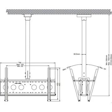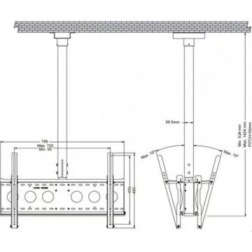 Support plafond double 32 pouces à 60 pouces LCD-PLASMA (max 60Kg)Support 2 écrans LCD/Plasma pour plafond – Dimensions de l’écran : 32′-60’/ 81-152cm- Charge maximum : 60kg de chaque cote- Inclinaison verticale : 0°,5°,10°,13°,15°- matériau : acier- Rotation : 360°- Réglage en hauteur : 924mm a 1424mm (par tranche de 50mm)- Verrouillage de sécurité et antivol -: Oui- Extension maximum : 725x450mm- Dimensions du produit (sans bras) : 788x490x48 mm- Poids du produit : 16kg- Visserie : M8,M6,M5,M4- garantie : 10 ans -Le cadenas n’est pas fourni.