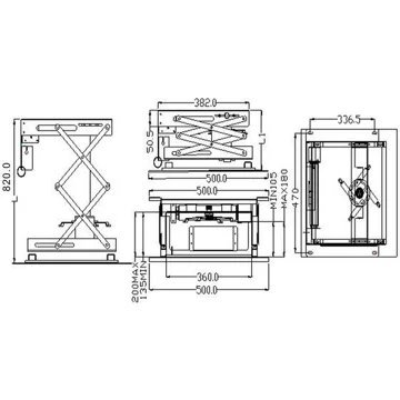 Gabarit du vidéoprojecteur max autorisé: 360 x 336 mm.