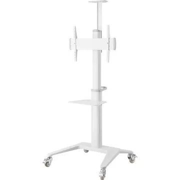 Le support mobile KIMEX 030-1204 est conçu pour accueillir des écrans TV de 37 à 70″ répondant aux standards VESA (200×200 min, 600×400 max), jusqu’à 70 kg. Ce support professionnel est composé d’une base de sol équipée de roulettes pour une parfaite mobilité, et d’un mât robuste sur lequel vous pourrez régler facilement le niveau de votre écran de 125 à 160 cm (centre écran). Le support 030-1204 est complètement modulable, il permet d’incliner votre écran (+5/- 12°) et de le positionner en mode paysage ou en mode portrait en toute facilité pour s’adapter à tous vos besoins. Il dispose enfin de deux étagères amovibles et réglables en hauteur, la supérieure, pour accueillir une caméra de visioconférence, la médiane, vos accessoires audiovisuels. Le support de sol KIMEX 030-1204 est donc une solution idéale pour une utilisation active en milieu professionnel dans des bureaux pour de la visioconférence ou pour équiper un salon d’exposition.