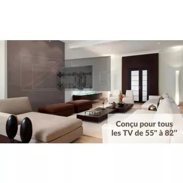 Si vous devez fixer un téléviseur au mur de votre chambre ou de votre bureau, le Support mural MELICONI orientable FLAG TV vous ravira. Ce support amovible pourra accueillir une télé d’une diagonale allant de 55 à 82 pouces, soit 127 à 208 cm. De fait, même si vous disposez d’une très grande TV, ce support vous conviendra parfaitement.