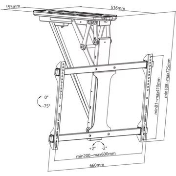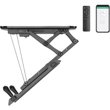 Le support plafond escamotable motorisé pour écran TV 018-7064W est le choix parfait pour économiser de l’espace dans une pièce à plafond bas (plat ou incliné). Ce support est recommandé pour écran de 32 à 70 pouces répondant au standard VESA (200x100mm min, 600x400mm max), jusqu’à 35 Kg. Ingénieux et fonctionnel, ce support a été conçu pour faire sortir votre téléviseur et le ranger après utilisation grâce à sa télécommande. Montage facile en quatre temps : fixez le support au plafond grâce au gabarit fourni, fixez la plaque VESA au dos de votre écran de télévision, installez l’ensemble sur le support à la hauteur désirée puis vissez la plaque VESA au support. Une fois installé, actionnez votre écran jusqu’au niveau souhaité grâce à la télécommande puis refermez-le après utilisation. Votre support peut également être contrôlé par Wi-Fi soit avec une application (TUYA, AMAZON ALEXA, GOOGLE NEST), ou par commande vocale via un système domotique, ou encore par RS-485. Pour un confort optimal, ce support vous permet de régler et de mémoriser le niveau d’arrêt du moteur, l’écran s’arrête ainsi à la position prédéterminée. Avec ces caractéristiques, le support plafond escamotable motorisé KIMEX 018-7064W se révèle comme une solution novatrice et fonctionnelle recommandée pour les particuliers ainsi que pour les professionnels de l’intégration audiovisuelle.