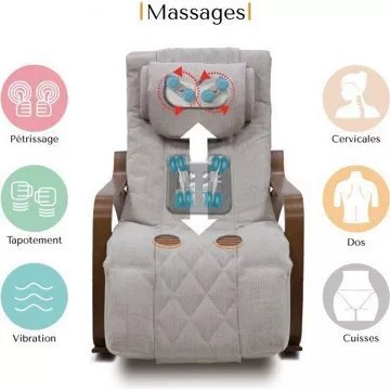 • Le mot du médecin : Les fauteuils massants vous permettent de vous détendre, d’éliminer le stress et de vous apporter du bien-être. Ils peuvent soulager les douleurs dorsales par leur effet massant.
