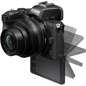 L’appareil NIKON Z50 possède un grand écran LCD haute définition à commandes tactiles. Il s’incline vers le haut ou le bas pour des angles de prise de vue parfaits. Il se connecte rapidement en WIFI et Bluetooth, ce qui vous permet de stocker et partager facilement vos photos et vidéos. Son mode silencieux est idéal pour prendre des photos en toute discrétion.