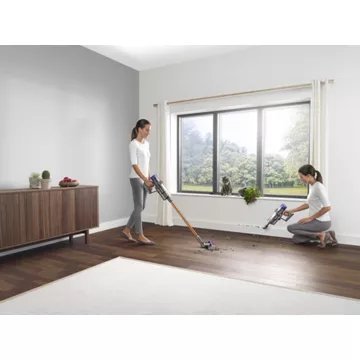 Doté d’innovations signées Dyson, l’aspirateur-balai Cyclone V10 Absolute est équipé d’un moteur numérique V10 qui délivre une puissance d’aspiration allant jusqu’à 125 000 tours par minute. Ce moteur innovant et ultra-performant vous garantit un nettoyage rapide et efficace sur tout type de sol, des parquets les plus fragiles aux moquettes les plus épaisses.