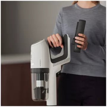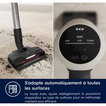 Le design ingénieux de l’ELECTROLUX 800 EP81UB25SH inclut un tube métal télescopique ajustable à la taille de l’utilisateur, une fonction Quick Release pour un passage rapide à l’aspirateur à main, et une brosse principale avec éclairage LED pour une visibilité accrue. La capacité du bac à poussière de 0.4 l, les filtres lavables et la fonction Brush Roll Clean (BRC) facilitent l’entretien. Avec une autonomie de 35 minutes en mode Normal et un temps de charge rapide de 2,5 heures, cet aspirateur sans fil est prêt à relever tous les défis du nettoyage quotidien. De plus, le système de filtration complet en 5 étapes capture jusqu’à 99.99% des microparticules, assurant un air intérieur sain.