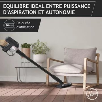 - Détail sur la puissance d’aspiration: : Elle peut varier en fonction du type de sols (parquet, carrelage, tapis, moquette) que vous aspirez et du mode utilisé (standard, éco, boost)