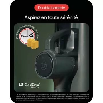 - Détail sur la puissance d’aspiration: : Elle peut varier en fonction du type de sols (parquet, carrelage, tapis, moquette) que vous aspirez et du mode utilisé (standard, éco, boost)