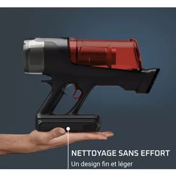 Gagnez en agilité et vivez une expérience de nettoyage pratique et confortable grâce à son design fin et son format léger de 1,6kg (en position aspirateur à main). L’aspirateur possède un écran de contrôle digital qui affiche l’autonomie restante, le niveau de puissance et l’alerte de nettoyage du filtre. Pour un gain de place et plus de praticité, l’aspirateur balai est fourni avec une base de charge murale. Retrouvez également à l’intérieur du pack un chargeur et un filtre supplémentaire.