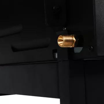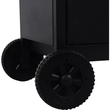 L’armoire et les étagères en dessous offrent un espace pour ranger les fournitures de cuisine. Grâce aux 2 roues robustes, le gril d’extérieur est facile à déplacer en cas de besoin (veuillez ne pas le déplacer pendant l’utilisation). Remarque : Pour connecter le barbecue à la bouteille de gaz, un tuyau de gaz et un régulateur de pression approprié sont nécessaires, qui ne sont pas inclus dans la livraison.