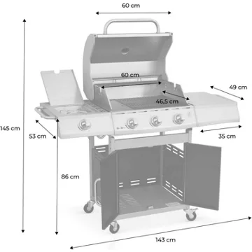 Barbecue complet : L142xP59xH115cm – H145cm capot ouvert