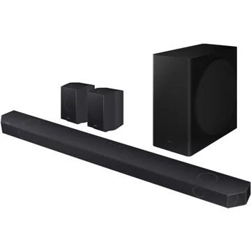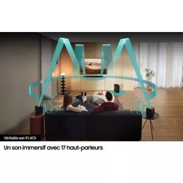La barre de son Samsung HW-Q935D est dotée de 17 haut-parleurs incluant un haut-parleur central, deux haut-parleurs verticaux, deux latéraux et deux coins. Elle vous offre une expérience sonore riche et détaillée. Cette configuration assure une immersion sonore exceptionnelle, vous plongeant au coeur de l’action.