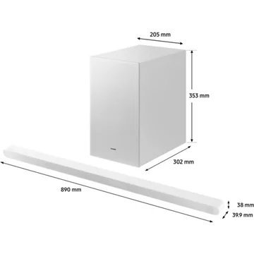 La barre de son Samsung HW-S711D/XE, issue de la prestigieuse S-Series, se distingue par sa finesse exceptionnelle et sa puissance acoustique. Avec moins de 4 cm de hauteur, elle s’intègre parfaitement dans tout intérieur sans compromettre la qualité sonore. Équipée d’un système 3.1Ch, elle comprend sept haut-parleurs, dont un central dédié aux dialogues, assurant une clarté vocale inégalée. Le caisson de basse sans fil de 6,5 » enrichit l’expérience avec des basses profondes et dynamiques. La technologie Dolby Atmos et DTS Virtual:X vous plonge dans une dimension sonore immersive, tandis que SpaceFit Sound optimise le rendu en fonction de l’espace de la pièce.