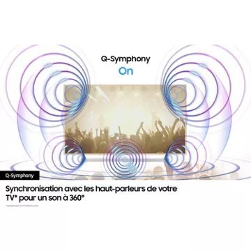 La HW-S711D/XE brille par sa connectivité étendue et son intégration harmonieuse avec les téléviseurs Samsung. La fonction Q-Symphony 3.0 synchronise les haut-parleurs de la barre de son avec ceux de la TV pour une immersion à 360°. La connexion sans fil via Wi-Fi et Bluetooth, ainsi que le HDMI eARC, permettent une installation épurée et pratique. Chromecast et Airplay 2 sont intégrés pour un partage aisé de vos contenus musicaux préférés. De plus, la barre de son est compatible avec les enceintes arrière SWA-9200S pour une expérience cinématographique complète. Avec la télécommande unique, contrôlez à la fois votre barre de son et votre téléviseur, simplifiant ainsi votre expérience utilisateur.