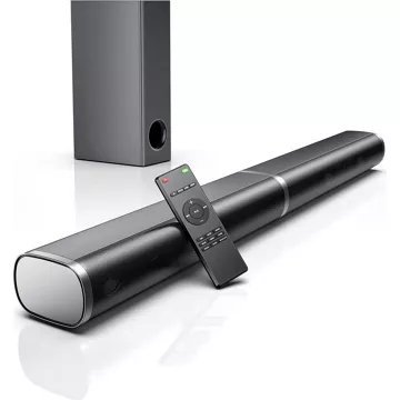 4 haut-parleurs large bande de 2,25″, avec 2 tubes de guidage des basses, le niveau sonore est plus riche et la qualité sonore est plus importante. La puissance maximale de 190 W vous offre une expérience sonore plus choquante et optimise la qualité sonore de votre la télé.CAISSON DE BASSES 5,25″: caisson de basses submersible de 100 W, haut-parleur basse fréquence intégré de grande taille de 5,25″, créant un sens riche et complet des basses fréquences. Le tube de guidage des basses optimisé vous permet d’obtenir un champ sonore plus large et une expérience sonore de toucher le sol.EFFETS SONORES OPTIMISÉS: la barre de son dispose de 6 modes d’égalisation : Jeu, Basse, Film, Musique, Actualités, 3D. Grâce au traitement de la technologie DSP professionnelle intégrée, le son est optimisé pour différentes scènes afin de répondre à vos différents besoins.INTERFACES ABONDANTES: HDMI ARC, OPT, Bluetooth 5.0, AUX, USB. 5 méthodes de connexion, qui peuvent prendre en charge la connexion de la barre de son aux téléphones portables, ordinateurs portables, téléviseurs, projecteurs, consoles de jeux et autres appareils, pouvant répondre aux besoins d’une famille.DESIGN ÉLÉGANT: 84 cm de long, il peut être placé sur le meuble TV ou accroché sous le téléviseur. La longueur correspond à la plupart des téléviseurs. Le corps est équipé d’un écran LED, qui n’est pas éblouissant et se fond dans divers environnements. La conception deux en un est plus pratique pour le stockage