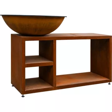 Le socle est fabriqué en acier Corten revétu d’un peinture poudre spéciale haute températures pour les versions noir