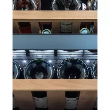- Type de porte : vitrée, permet de visualiser facilement les bouteilles sans avoir à ouvrir la porte, ce qui réduit la circulation de l’air dans la cave et donc la variation de la température. Le traitement anti-uv protège le contenu.