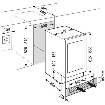 - Type d’installation : encastrable, installez votre cave sous un plan de travail ou encastrez la dans une niche.