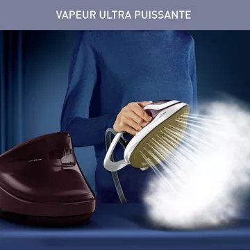 La centrale vapeur PRO EXPRESS ULTIMATE II Surreau est prête en 2 min, et son réservoir d’eau amovible de 1,2 L peut être rempli à tout moment, pour ne jamais manquer de vapeur. Une fois que vous avez terminé votre repassage, le système de verrouillage garantit un transport et un rangement faciles et en toute sécurité.
