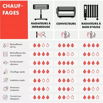 Puissance: thermostat 900 ou 1800W, protection contre la surchauffe