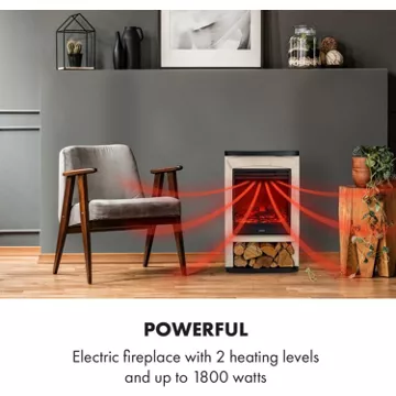 Puissante : cheminée électrique avec 2 niveaux de chauffage jusqu’à 1800 watts