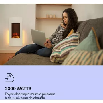 2000 watts : Puissante cheminée murale électrique avec deux niveaux de chauffage
