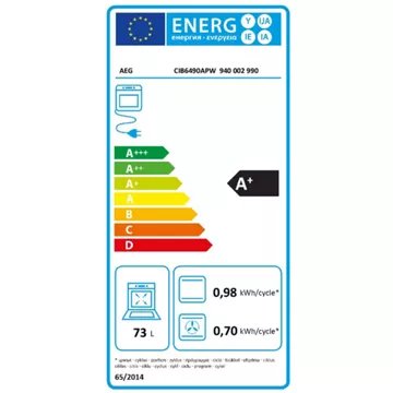 - Valeurs du label énergie : Label énergie A+, Consommation en convection naturelle 0,98 kW, Consommation en chaleur tournante 0,7 kW