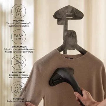 Le STEAMONE SteamCube se distingue par sa performance exceptionnelle de 2900W et une pression de 10 bars, garantissant des résultats professionnels sur tous types de textiles. Sa technologie haute pression, associée à une tête de diffusion FlowVector large et ultra légère, permet une émission de vapeur puissante jusqu’à 125g/min. Cette combinaison assure un défroissage rapide et efficace, que ce soit avec ou sans planche à repasser. Les 6 accessoires inclus, dont un cintre pliant et un porte-pantalon, offrent une polyvalence inégalée pour traiter chaque vêtement avec le plus grand soin.