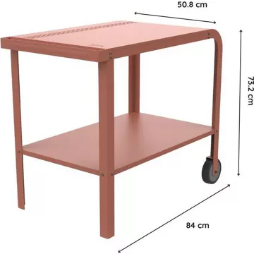 Utilisez cette desserte en acier thermolaqué pour poser votre four à pizza Piana ou Piana Gaz. Mobile et robuste elle est idéale pour installer un vrai coin pizza dans votre jardin. Grâce à la poignée et les deux roues à l’arrière vous pourrez la déplacer facilement. Utilisez le plateau supérieur pour poser votre four à pizza. Ingrédients, ustensiles et accessoires trouveront leur place sur le plateau inférieur.