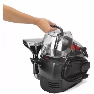 Cette shampouineuse portative émet un jet d’eau chaude associé à de la solution nettoyante qui pénètre au coeur des taches puis aspire la surface humide. En appuyant sur la gâchette du vaporisateur de l’appareil vous maîtrisez la quantité de liquide pulvérisée, selon vos besoins et le degré de salissure.