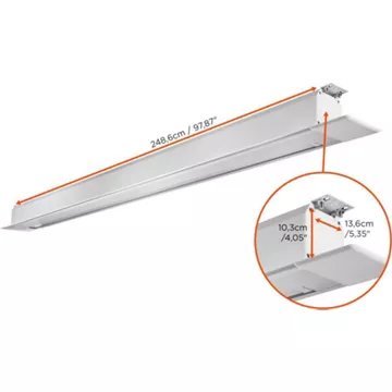 • Dimensions de la découpe de plafond : 244 x 11 cm (Longueur x Largeur)