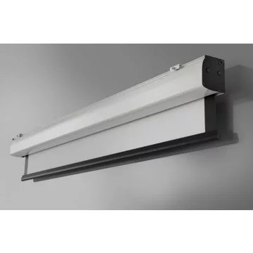 Ecran de projection Celexon Motorisé Expert XL 350 x 265 cm Les écrans de projection motorisés de la série « Expert XL » de Celexon, s’ adressent essentiellement à  des applications professionnelles dans de grandes salles de séminaire/réunion mais également au monde du Cinema plus poussé chez soi. Des kits d’ encastrement au plafond sont disponibles Caractéristiques : – 350 x 265 cm de surface utile (correspond à  une diagonale de 439 cm ou 172 pouces) – Format 4:3 – 5 cm de bords noirs, à  gauche comme à  droite. – Barre de lestage noir, lourde (38mm) – Dimensions du carter en cm (Largeur x Hauteur x Profondeur) : 371 x 13,3 x 12,4 cm – Poids : 30 kg. – Dos noir & opaque. – Très bon tendu grâce à  une toile épaisse et lourde. – Classement M1 7201-96 – Puissance 90 Watts, Tension : 230 Volts, Fréquence : 50 Hz – Gain de 1.2 – idéal pour le Home Cinéma, comme pour les présentations – Sortie de câble à  droite (vu de l’ avant) – Boîtier de pilotage mural inclus dans la livraison. – Carter carré blanc élégant (RAL 9010) en aluminium. (Equerres jointes à  la livraison) – Adapté à  une installation au mur et au plafond. – En option : Kit d’ installation pour assemblage au plafond. – En option : Télécommande UHF – En option : Kit Trigger-Set 12V – Hauteur d’ arrêt réglable sans à -coups pour d’ autres formats. L’ écran de projection Celexon motorisé Expert XL est LA solution pour vos grandes salles de réunion/séminaire, salles de présentation ou salles de cours, et évidemment, pour le Home Cinema exigeant. Une finition et une qualité remarquable, une toile de qualité avec un excellent tendu, ainsi qu’ un kit d’ installation au plafond (en option) simple d’ utilisation, mais génial, tels sont les caractéristiques de l’ écran de projection Celexon. Cet écran de projection peut être opéré grâce à  l’ interrupteur inclus dans la livraison. En option, vous pourrez également faire l’acquisition d’une télécommande UHF. Le motorisation, elle, s’effectue grâce à  un moteur Gaposa très silencieux. Cet écran de projection peut-être fixé au mur comme au plafond, grâce aux équerres de fixation incluses dans la livraison. Le Design a également été particulièrement soigné, grâce à  son carter carré blanc en aluminium. Un kit d’encastrement au plafond est également disponible pour la gamme Expert XL (en option), afin d’obtenir une intégration parfaite dans la pièce. L’écran de projection dispose d’une bordure noire. Ceci permet une délimitation optimale de l’image, tout en donnant un meilleur contraste à  vos projections. Le dos noir, quant à  lui, empêchera la lumière de s’échapper. Ainsi, cet écran peut évidemment être utilisé devant une fenêtre. La hauteur de la toile sera facilement ajustable grâce à  l’interrupteur mural ou la télécommande, afin de permettre non seulement un format 4:3, mais également 16:9 voire 21:9. La livraison comprend l’ écran de projection (Câbles et Interrupteur inclus), un interrupteur mural, une notice de montage, un manuel d’ utilisation. En option, sont disponibles une télécommande UHF et un Kit Trigger 12V.