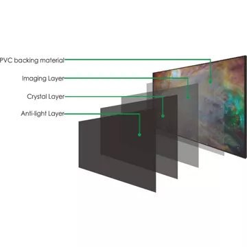Sa conception unique est similaire à celle d’une télévision LED de haute qualité, mais permet une zone de visionnement beaucoup plus large. Il réfléchit efficacement la lumière incidente du projecteur vers le spectateur et absorbe efficacement la lumière ambiante pour améliorer sensiblement la luminosité et le contraste de l’image.