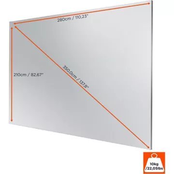 Toile : PVC blanc mat, type D avec un gain au facteur de 1,2 et un angle de vue de 150° degrés