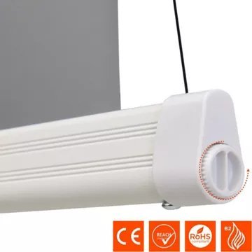 Le carter en aluminium extrudé au design arrondi, s’intègre avec élégance dans les environnements de vie modernes. Il est peint en blanc, avec des capuchons latéraux blancs et une barre de poids blanche. Cela signifie qu’il reste discrètement fixé aux plafonds blancs et ne perturbe pas l’environnement, surtout lorsqu’il est rétracté.