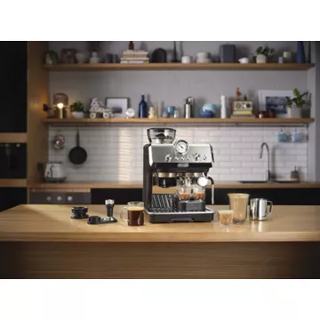 Quant au manomètre intégré, il indiquera la pression appliquée sur la mouture. Il affiche une ‘Optimal Zone’ pour vous guider et vous aider à sélectionner la pression parfaite pour votre café. Le service et l’utilisation de la Machine à Café Expresso DELONGHI Specialista Arte EC9155 seront faciles. Vous pourrez servir 1 ou 2 cafés simultanément. Vous aurez la possibilité de personnaliser vos boissons via le panneau de commandes.