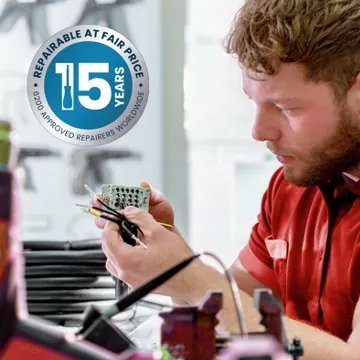 Fabriquée en France à Mayenne, cette machine à café à grain bénéficie d’une qualité irréprochable. Elle est conçue pour être facilement réparable pendant 15 ans avec des pièces détachées disponibles à un juste prix, dans l’un des 6500 centres de réparations dans le monde. Cela s’inscrit dans l’engagement de Krups en faveur d’une économie circulaire. Cet appareil est garanti 2 ans.
