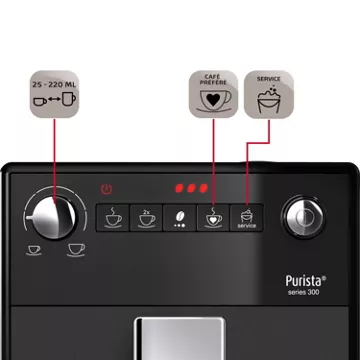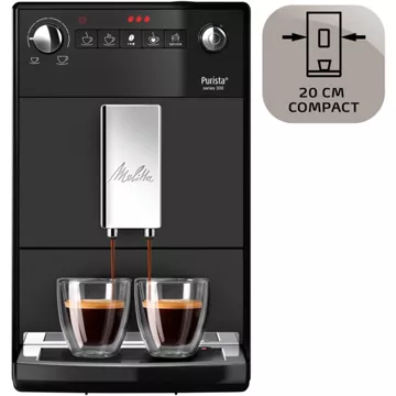 Avec son design compact et ses lignes épurées, le Melitta Purista® s’intègre harmonieusement dans toutes les cuisines, même les plus petites. Son panneau de commande intuitif, doté d’un affichage LED, simplifie la sélection des boissons et des fonctions, tandis que la touche Café préféré mémorise vos réglages favoris pour une préparation rapide et sans effort. Le nettoyage est également facilité par la chambre d’extraction amovible et les programmes automatiques de nettoyage et de détartrage. Enfin, la compatibilité avec les cartouches filtrantes Melitta® Pro Aqua réduit la fréquence des détartrages, prolongeant ainsi la durée de vie de la machine et préservant la pureté de chaque tasse de café.