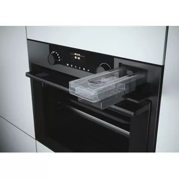 - Avantage vapeur (hydrolyse) : Il suffit de verser au fond la cavité de l’eau et du liquide vaisselle. Le four chauffe quelques minutes, l’eau se transforme en vapeur et ramollit les graisses. Un coup d’éponge pour retirer les résidus tombés dans la cavité. Ce système est écologique et économique.